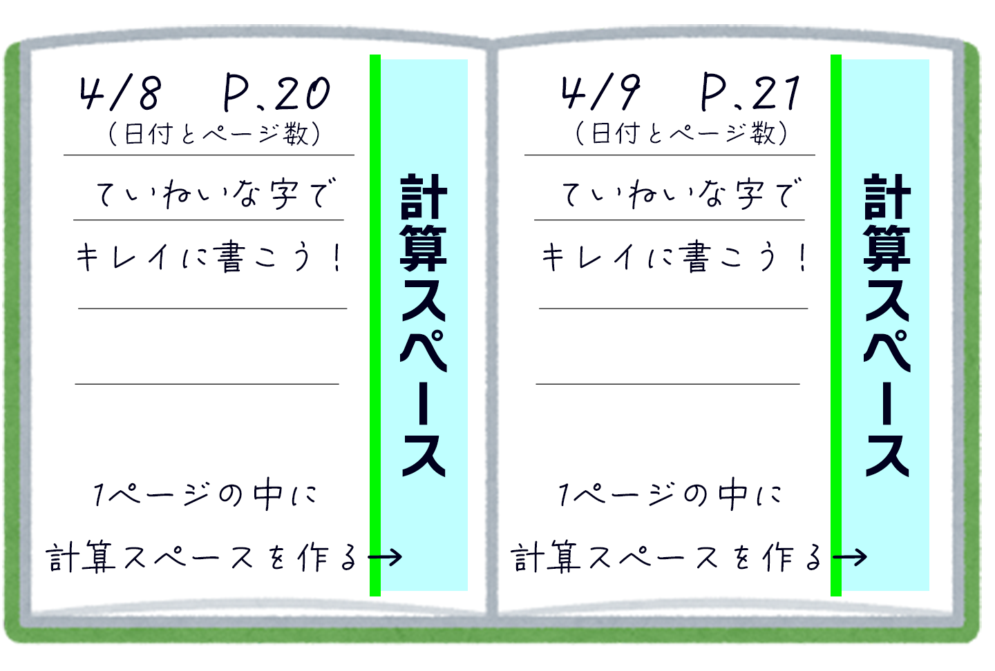 「他の紙にやりました」と言って、ノートに問題を解く時の途中の計算を書かないのは禁止だよ。